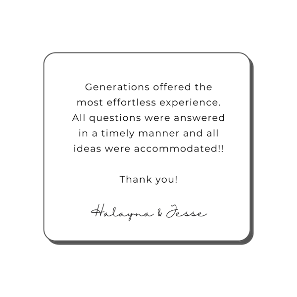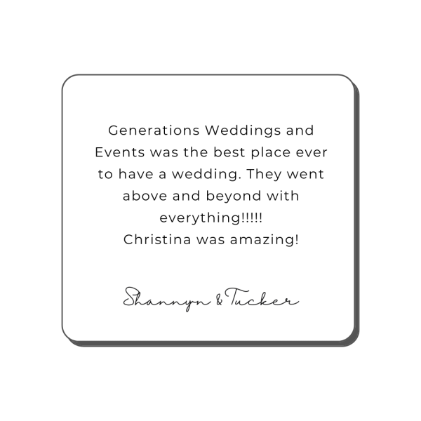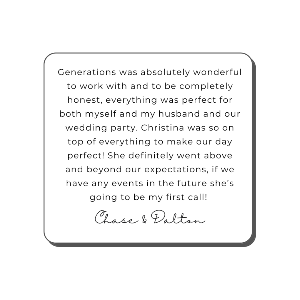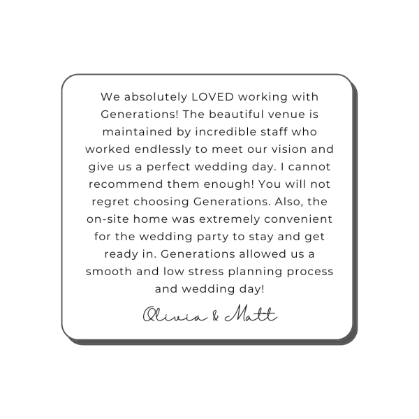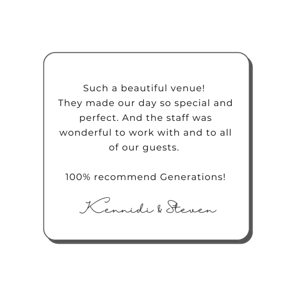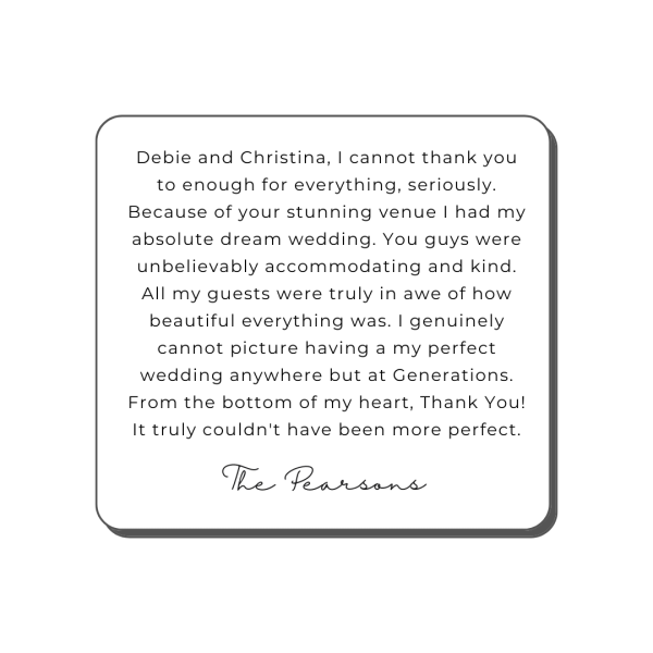 At Generations Weddings & Events, every celebration becomes part of our story, and the words from our couples mean the world to us. Below are some of the heartfelt experiences shared by the families who’ve celebrated their biggest moments here.